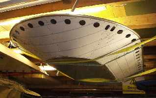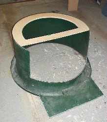 Having fixed the fan-shaft into the fan frame, this seemed like a good time to try out the fan inside the duct, so I assembled the fan, hub, and bearings. I put the duct on its back and dropped the fan in. While the bellmouth end (front) of the duct was very circular, at the rear of the duct the fan-tip clearance varied considerably as it rotated. Experts on the HCGB website bulletin board were talking about a tip to duct clearance of well under 10mm. The duct had been kicked around my garage for about a year, and it clearly needed some bracing to keep it circular. I cut out a former from MDF and screwed it into the back of the duct – much better.