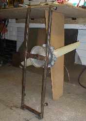 The Constructor’s Guide recommends that it should be built from 1" square-section steel tubing, in a simple H shape. I bought the fan shaft pre-welded into a 50mm x 25mm rectangular section and this section forms the cross piece of the H.