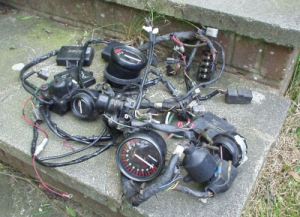 Having the wiring looms and instruments from two bikes I decided to sort them out.